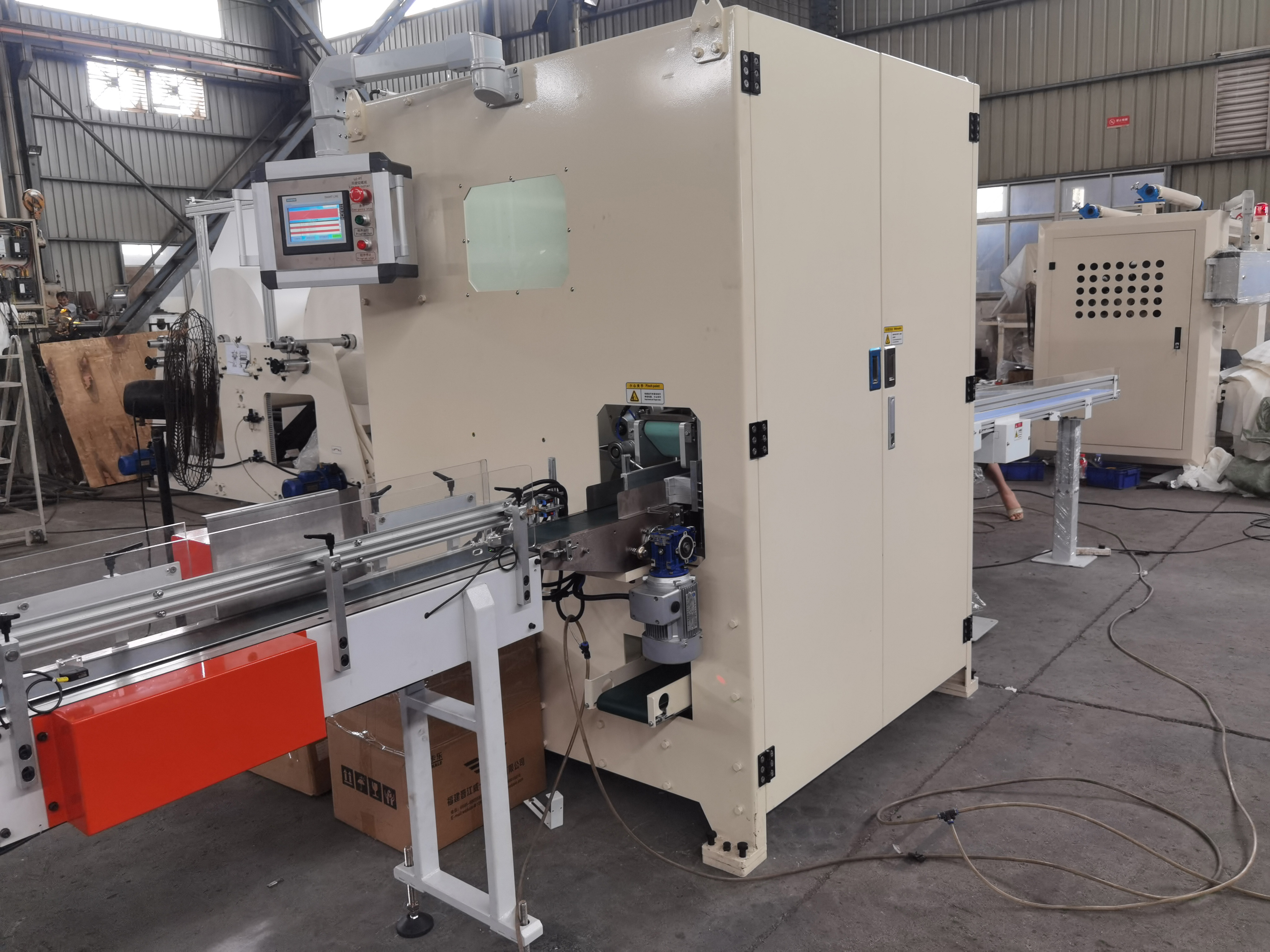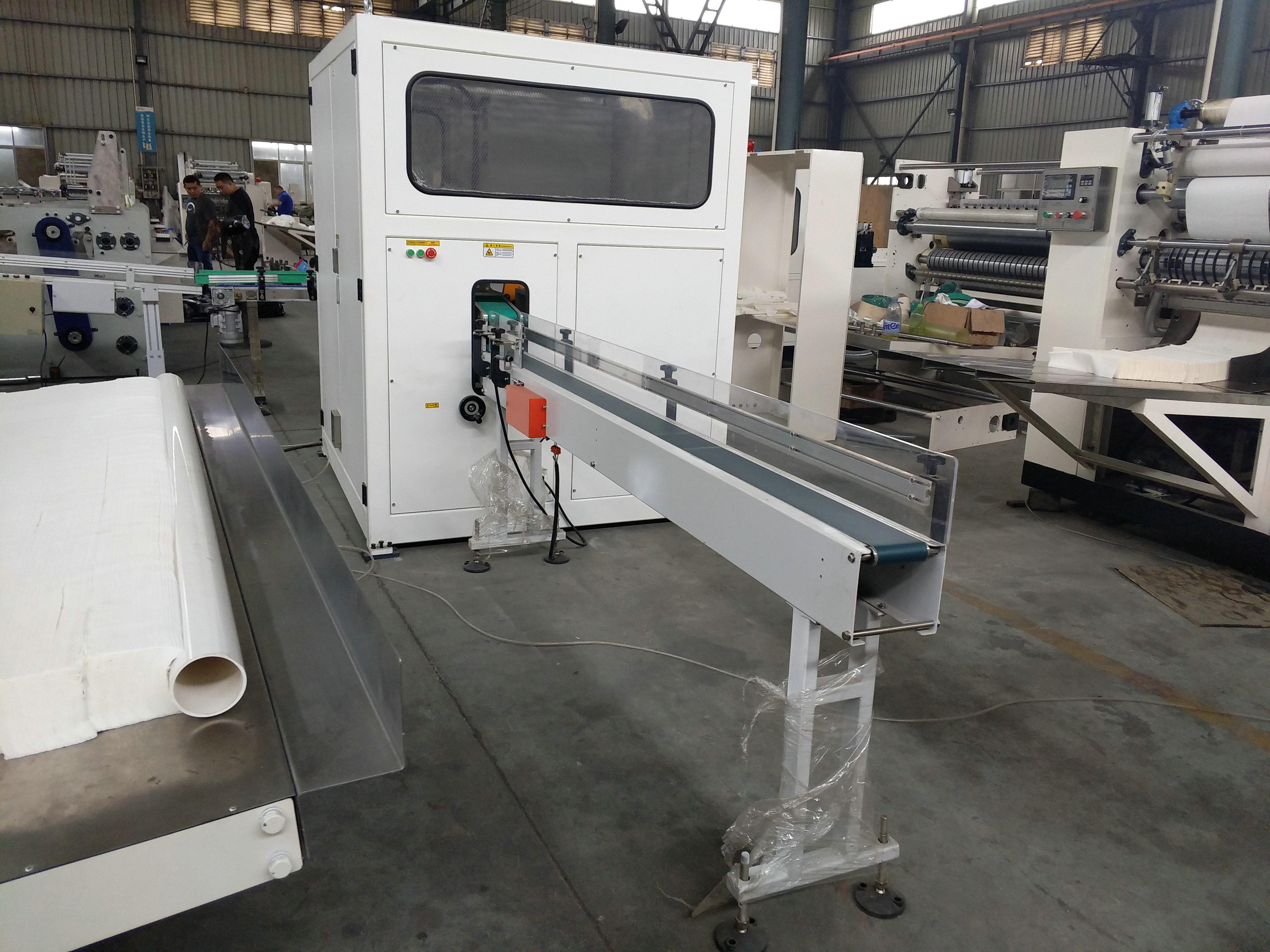 1. This equipment is used to cut folded tissue continuously and automatically. Such as boxed facial tissue or folded towel paper.